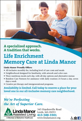 Sep 27, 2019. Linda Manor Assisted Living Senior Living Ads from Daily Hampshire Gazette