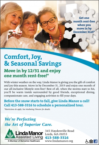Oct 31, 2019. Linda Manor Assisted Living Senior Living Ads from Daily Hampshire Gazette