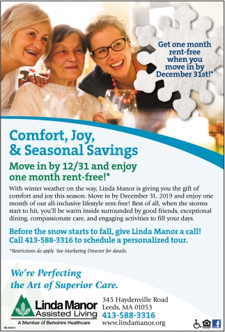 Nov 21, 2019. Linda Manor Assisted Living Senior Living Ads from Daily Hampshire Gazette