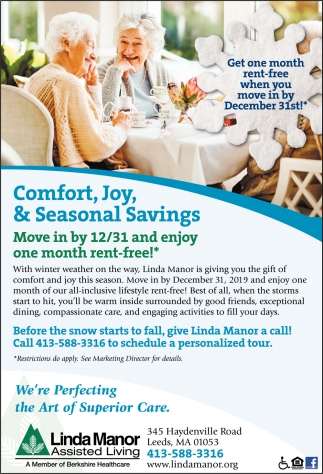 Dec 05, 2019. Linda Manor Assisted Living Senior Living Ads from Daily Hampshire Gazette