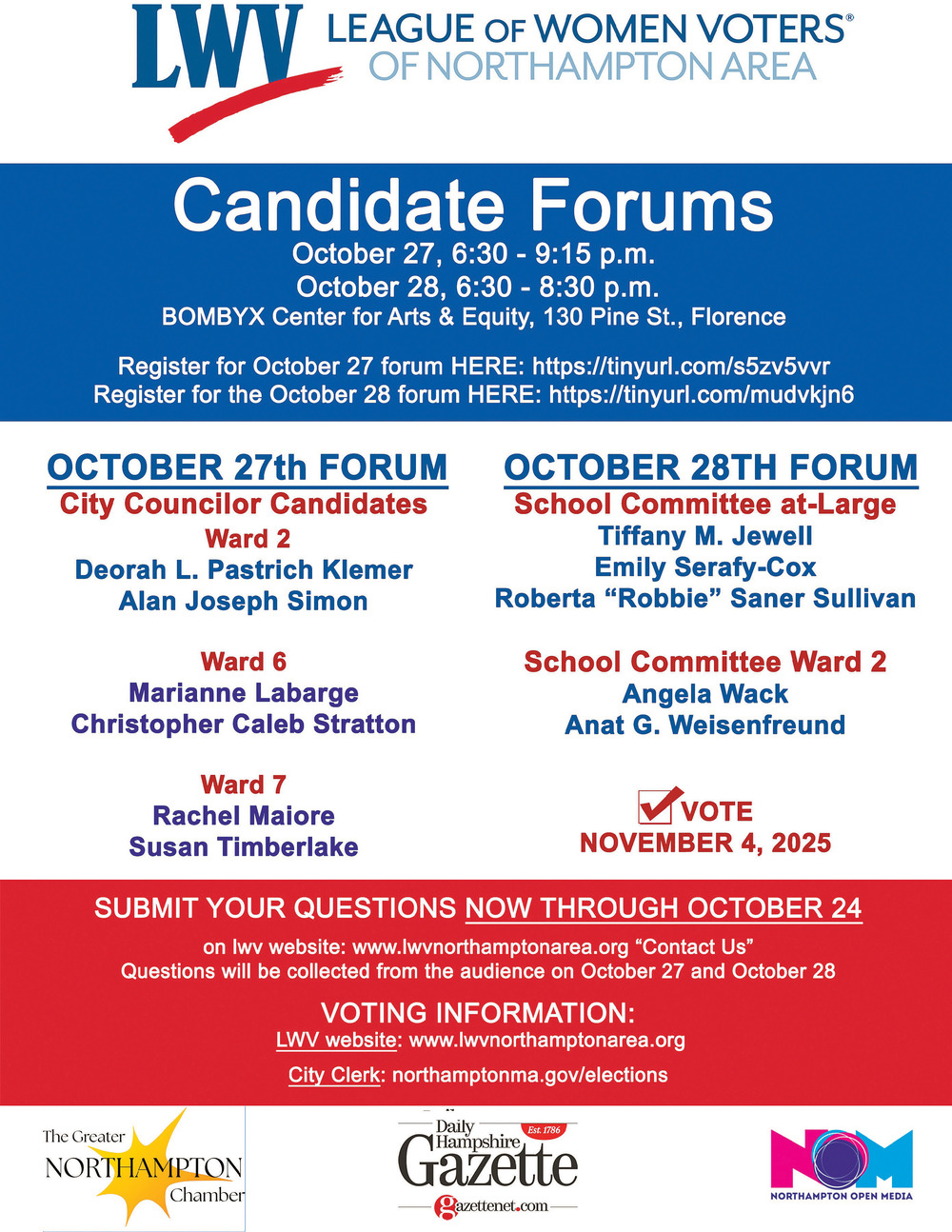 Oct 11, 2025. League of Women Voters of Northampton Area Organizations Ads from Daily Hampshire Gazette