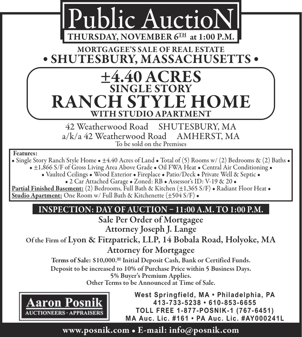 Oct 18, 2025. Aaron Posnik Auctioneers Appraisers Auction Ads from Daily Hampshire Gazette
