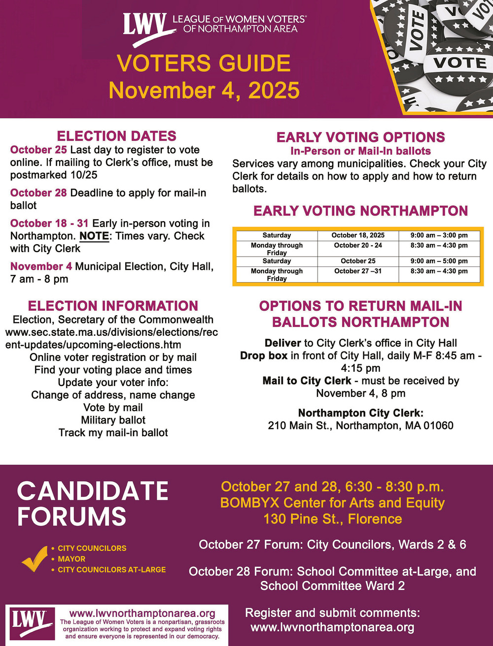 Oct 22, 2025. League of Women Voters of Northampton Area Organizations Ads from Daily Hampshire Gazette
