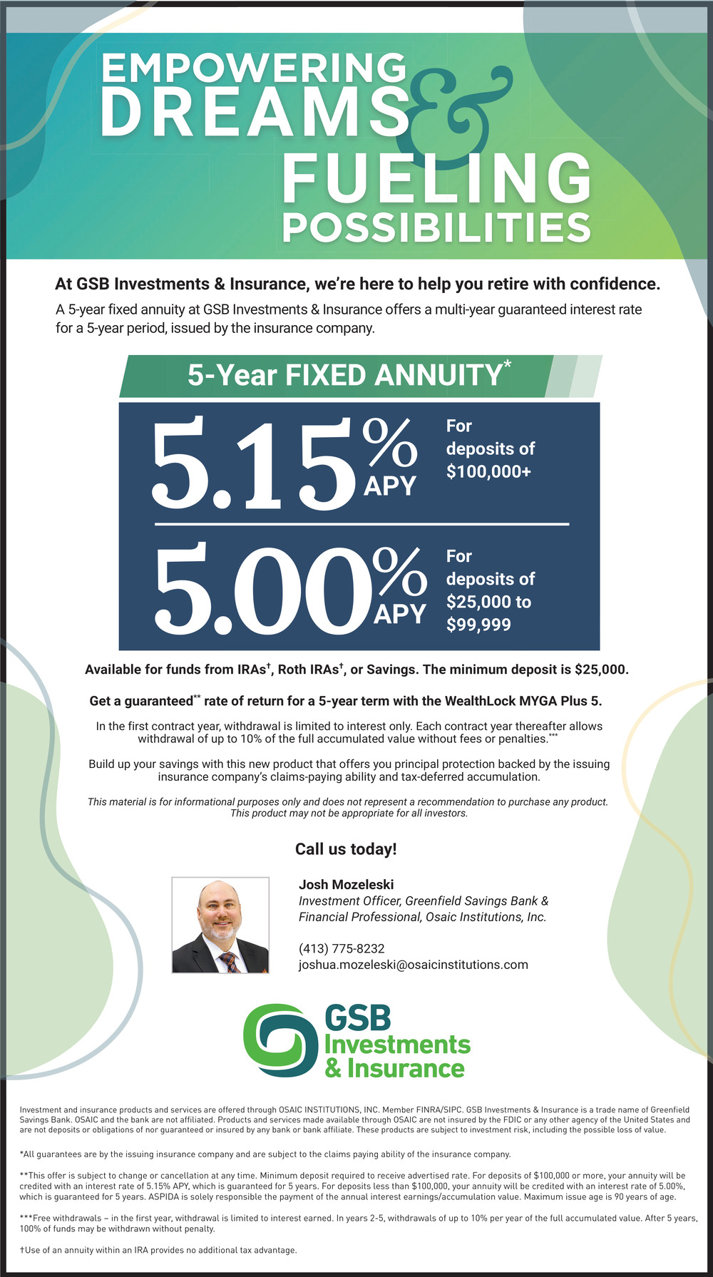 Ads for GSB Investments & Insurance in Greenfield, MA