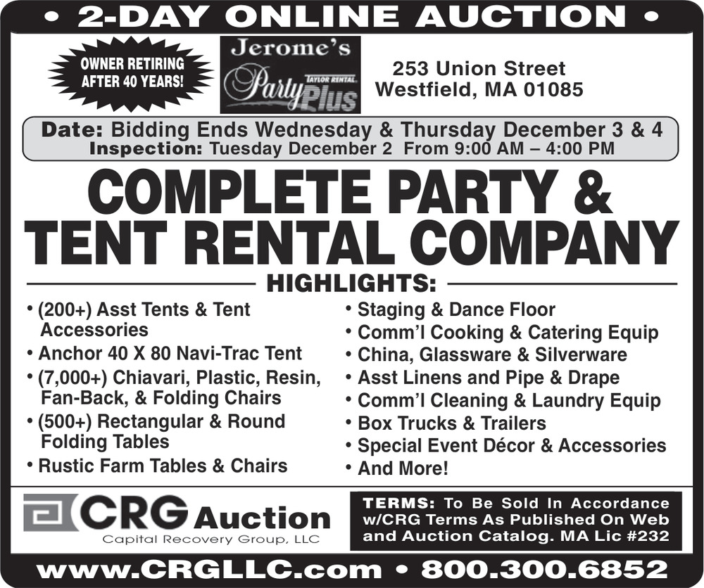 Nov 22, 2025. CRG Auction Auction Ads from Daily Hampshire Gazette