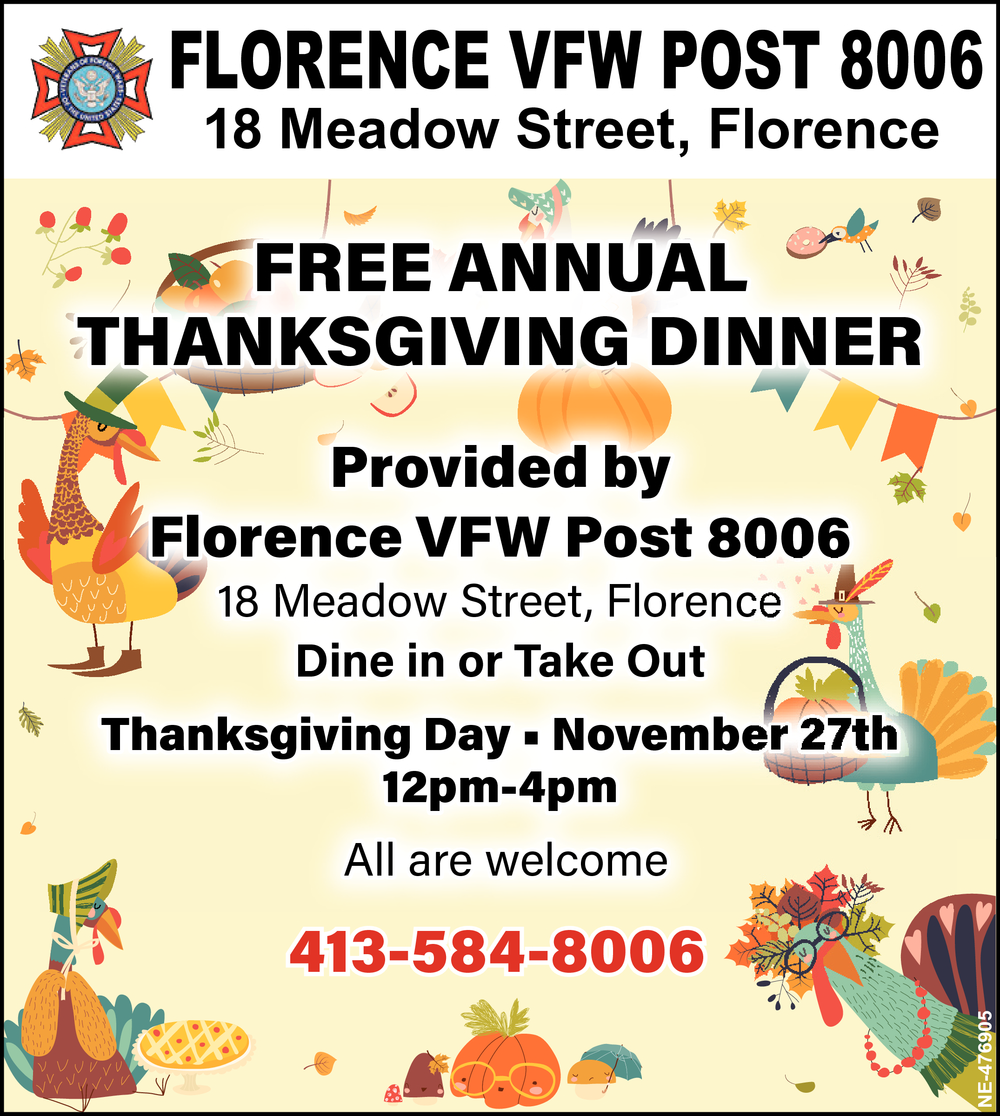 Nov 24, 2025. Florence VFW Post 8006 Events Ads from Daily Hampshire Gazette