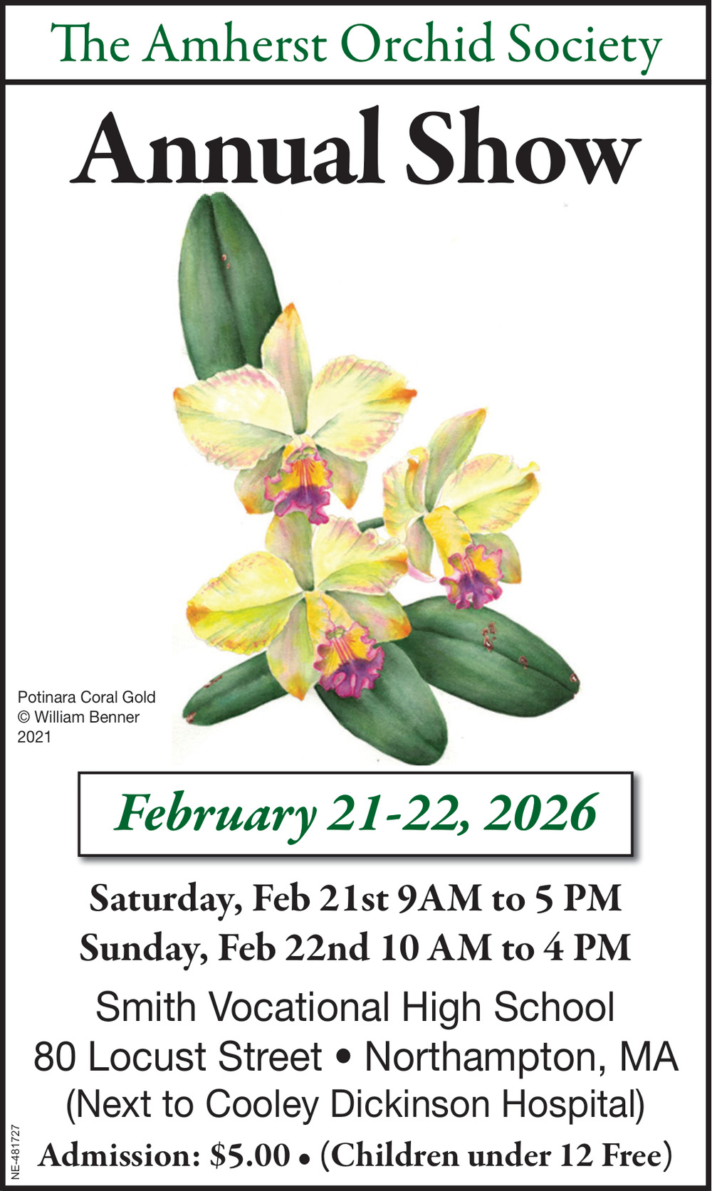 Ads for Amherst Orchid Society Annual Show (February 21 & 22, 2026) in Northampton, MA