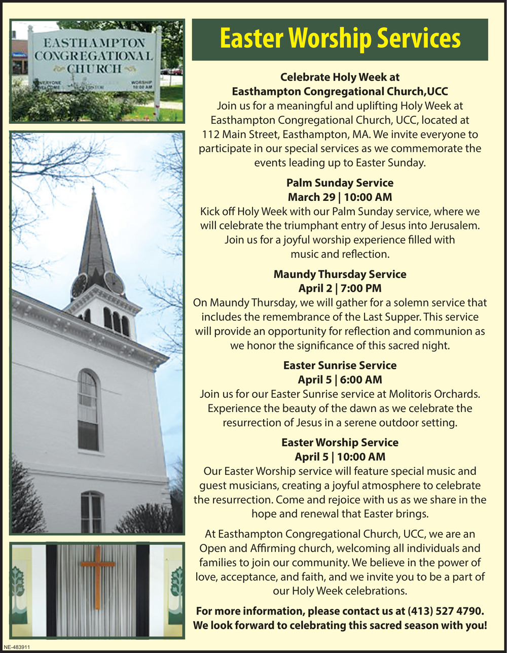 Apr 02, 2026. Easthampton Congregational Church UCC Church Ads from Daily Hampshire Gazette