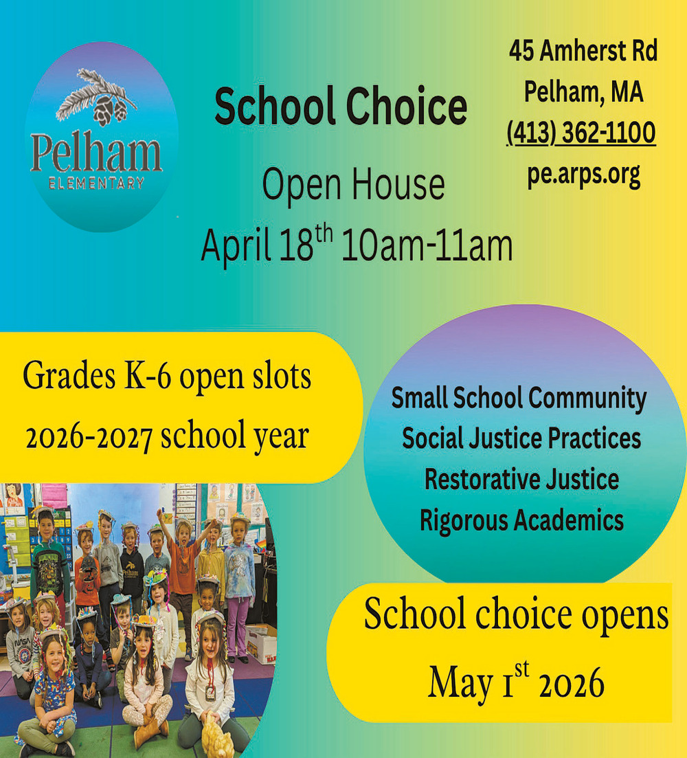 Apr 04, 2026. Pelham Elementary Schools Ads from Daily Hampshire Gazette