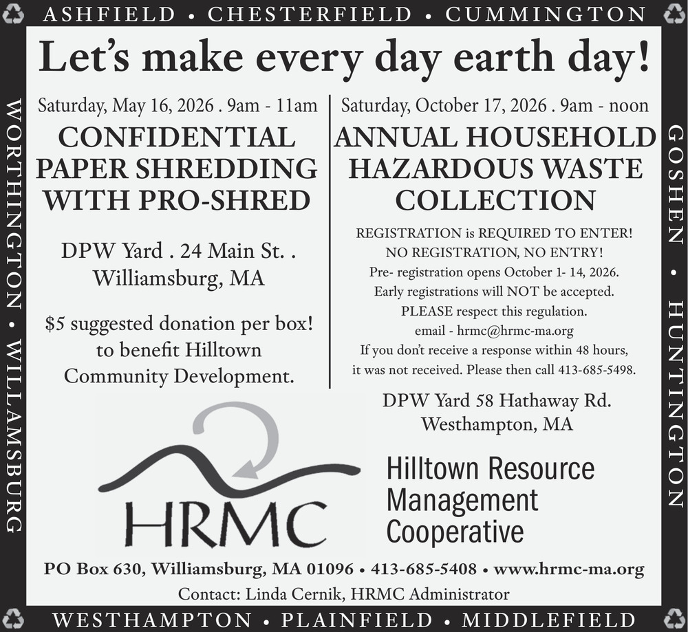 Apr 16, 2026. Hilltown Resource Management Cooperative Waste Management Ads from Daily Hampshire Gazette