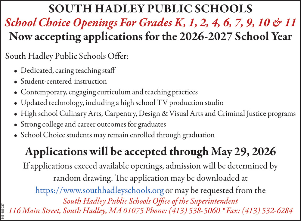 Apr 25, 2026. South Hadley Public Schools Education Ads from Daily Hampshire Gazette